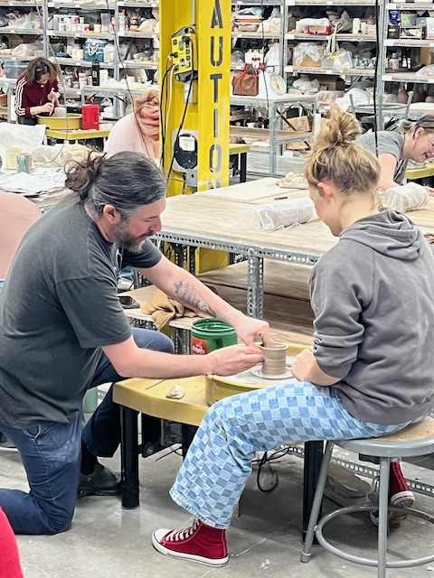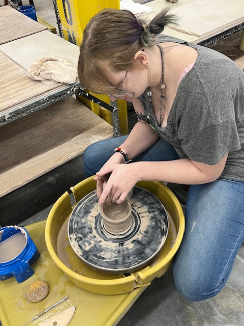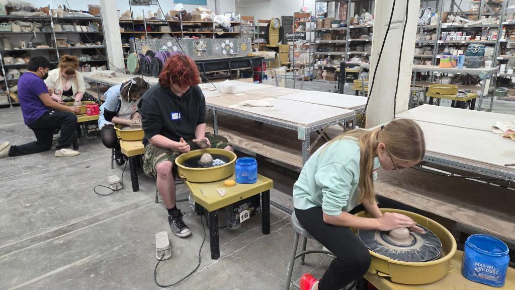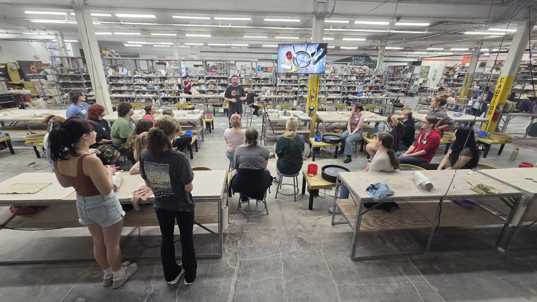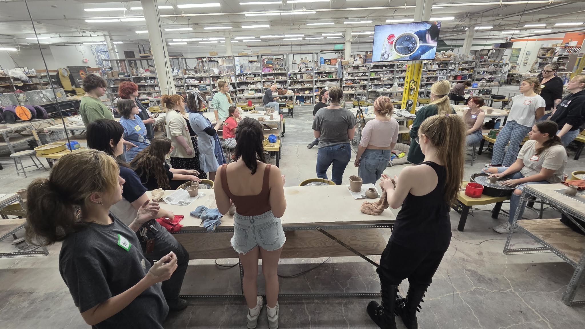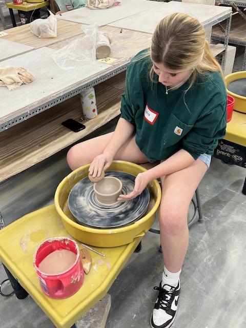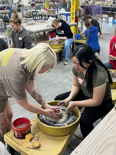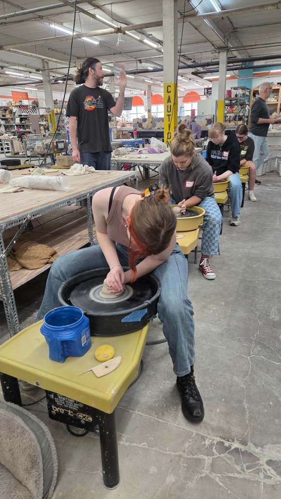 AP Art and Design students recently had the opportunity to engage in a hands-on ceramics experience at Queen City Clay as part of the Contemporary Arts Center’s School Outreach Program. This visit provided students with a deeper understanding of clay as an expressive medium, exposed them to wheel throwing techniques, and provided them with a glimpse of how the largest ceramics studio in the world operates. During the workshop, students explored wheel-throwing techniques under the guidance of professional ceramic artist, Jon Stein, and the QCC team…including OHHS Art and Design alumna Kylie Cornelius!