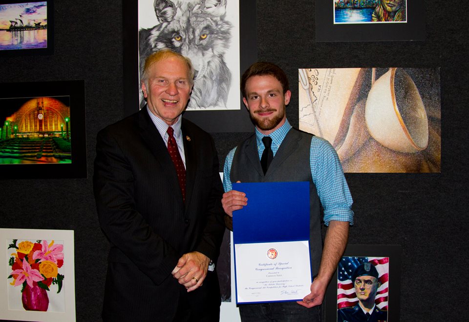 Congratulations to Josh Kells and Cameron Suter for representing Oak Hills High School as finalists in the 2014 Congressional Art Competition! And a special congratulations to Cameron Suter who’s work was selected for display at the U.S. Captiol in Washington D.C. for the next year! Cameron will be flown out for a special reception in June for the hanging of the work.