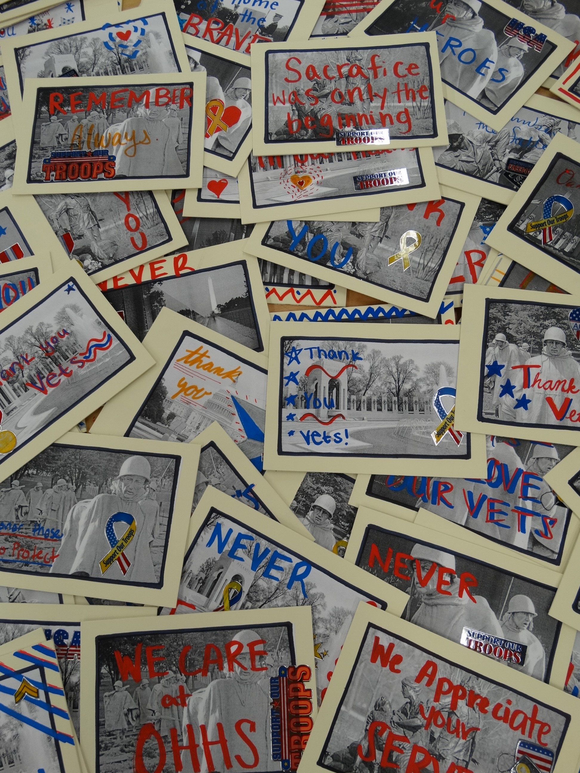 The National Art Honor Society at OHHS has been hard at work creating over 100 posters, and 200 handmade thank you cards, to welcome our community Veteran’s on Friday November 7th for a celebration of their service.