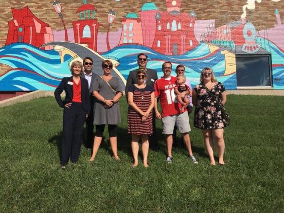 While the students were busy at work beautifying Cincinnati this summer, OHHS Art and Design teacher Jamie Schorsch was creating a large scale mural for the Miami University Regionals: Hamilton Campus. Schorsch was a part of a team of three other local artists working with StreetSpark on the creation of the mural. Stephen Smith designed the mural selected for the Miami University Regionals Hamilton campus as a part of their 50th-anniversary celebration…this is also the first mural on ANY of the Miami University campuses!
