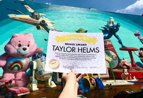 Taylor was also award the ArtWorks Biggie Award this summer. Over the past 6 years, Taylor has worked as an Apprentice on 10 different projects all over the Queen City!