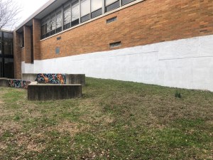 Right across from the Nicki Musgrove mural, spanning the massive wall in the courtyard will be the home of the Michelle (Minkle) Taylor Memorial Mural. Tragically, and unexpectedly, Minkle passed away in 2018. Minkle inspired her students and colleagues with her passion for teaching, her impact on OHHS will never be forgotten. The Painting and Mixed Media students, along with a little help from Kopf’s Art Foundations students, started the massive undertaking of preparing the wall which will be an amazing addition to the courtyard when completed.