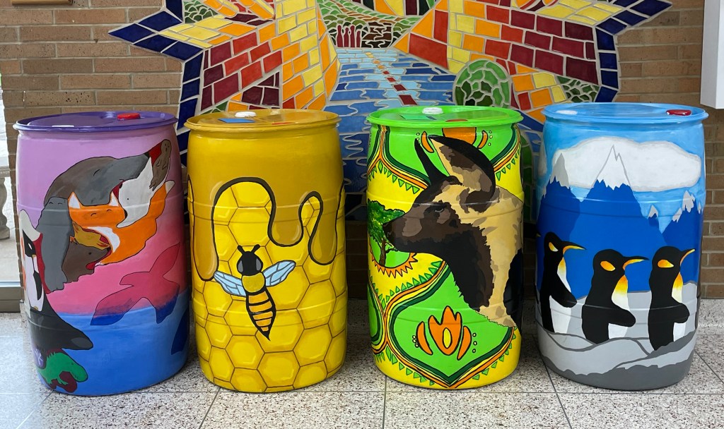 Rain barrels continue to grow in popularity across the country. However, one of its biggest drawbacks is its dull appearance. Some people are less likely to use them given their negative aesthetic impact on residential and commercial landscaping, even though they conserve water and save money. The “Save Local Waters” initiative believes that producing beautiful artistic rain barrels that have unique painted details will make them more desirable and naturally increase interest to promote their use.