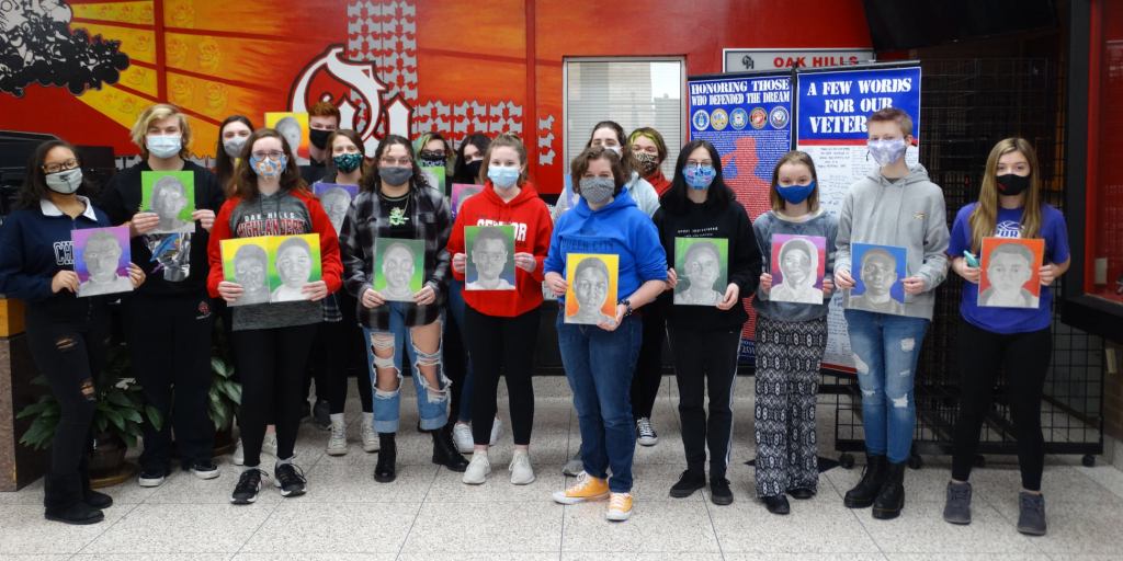 This year, students at OHHS created 25 portraits for children in Cameroon. Known as “Africa in miniature,” the Republic of Cameroon is a country in Central Africa with vast geographical and cultural diversity, home to more than 24 million people. The official languages of Cameroon are English and French because the French and British governments colonized Cameroon after World War I, though the people speak more than 200 different languages and make up more than 200 ethnic groups. Life in Cameroon has been stifled by corruption, authoritarian rule, violent conflict between the English-speaking population and the government, and an insurgency by the jihadist group Boko Haram that has displaced over one million women, men, and children. Still, the children hope for a safe present and a better future. The portraits the students made for the school children in Cameroon will remind each child of their own strength and beauty; it will show them that someone living far away is paying attention to the challenges that they face.