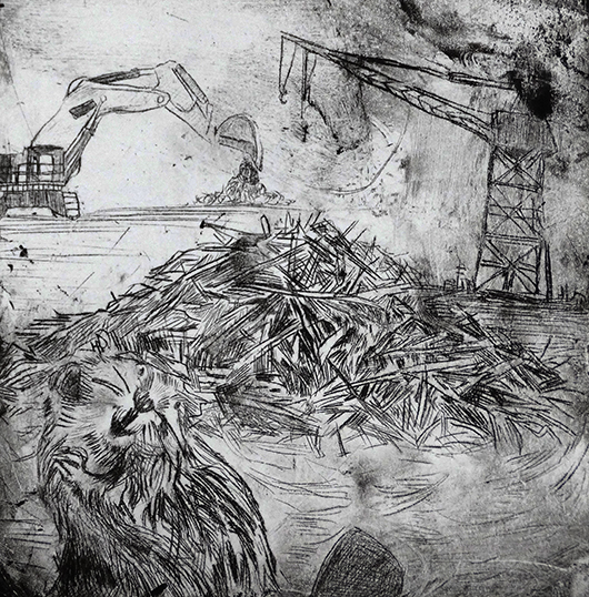 Drawing and Printmaking students worked to create drypoint etching compositions based on human impact and interaction with nature that demonstrate the concept of Tolerance, and what nature endures at the hand of man.