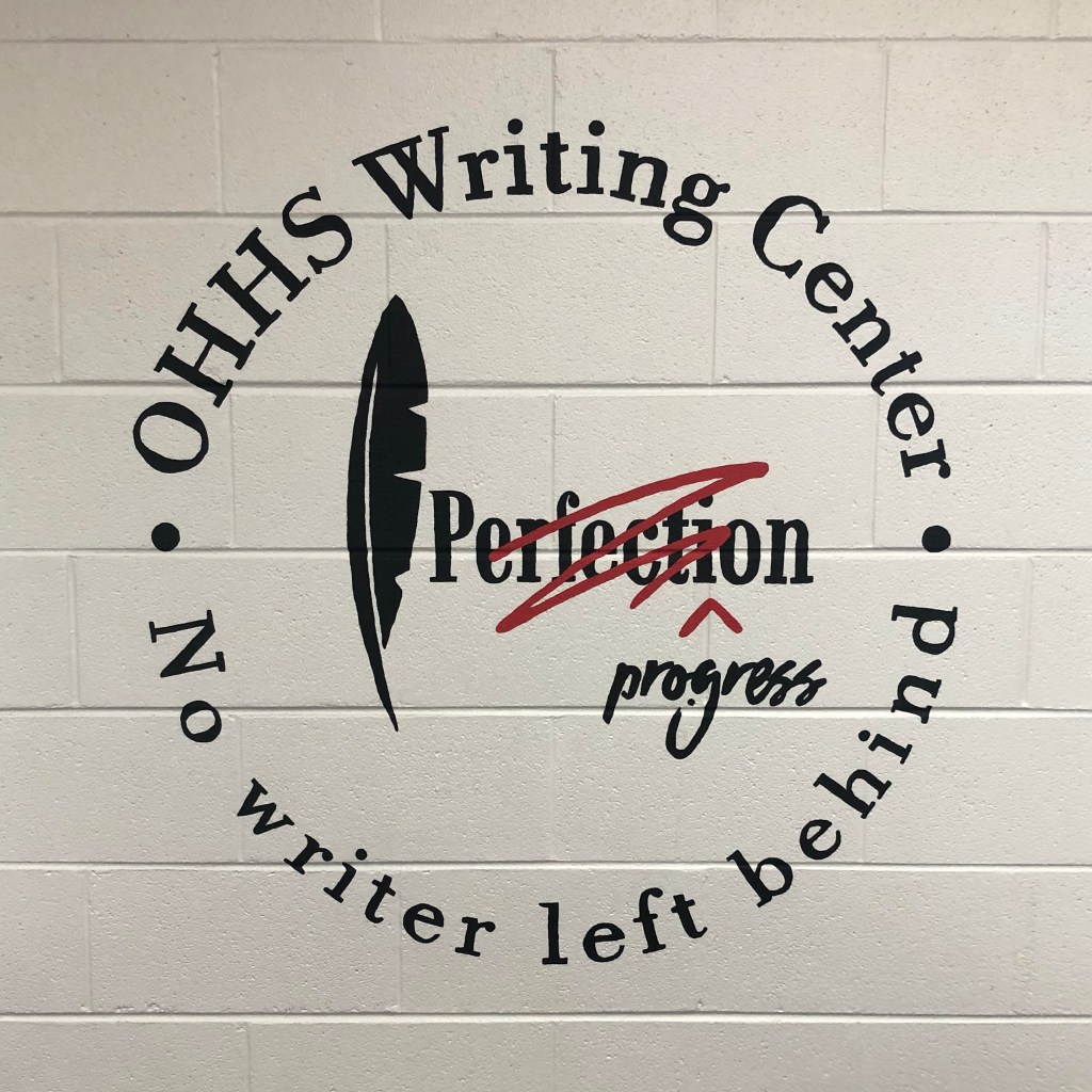 OHHS National Art Honor Society (NAHS) member, Molly Lorenz, undertook the challenge to create a mural that captures the spirit of the OHHS Writing Center. Molly independently worked on the creation of the design and the execution of the painting of the mural throughout the year as a way of earning arts-related community service hours for NAHS. This week, Molly wrapped up her vision!