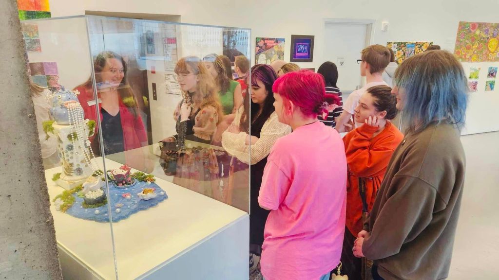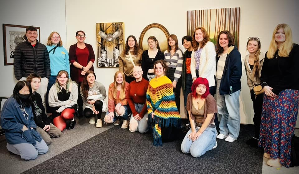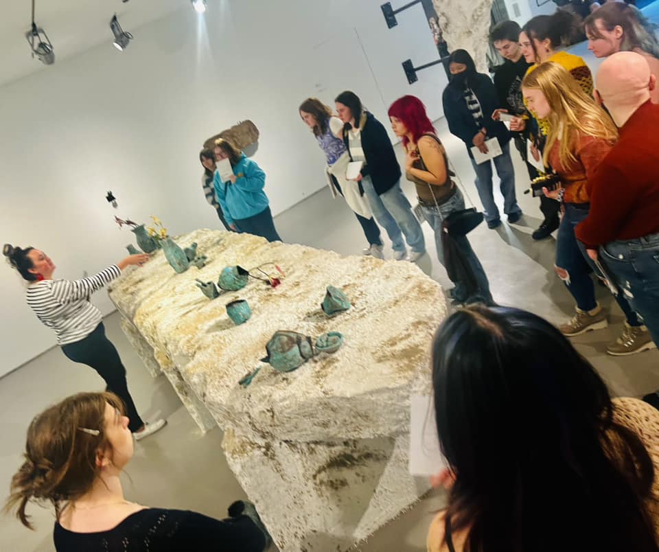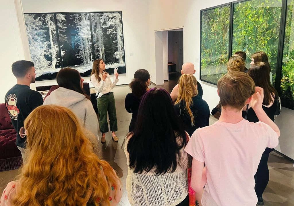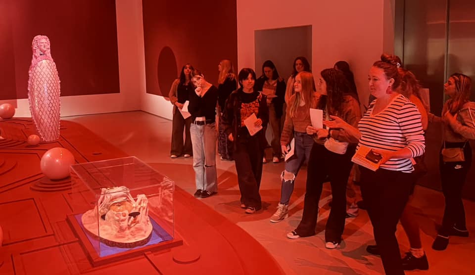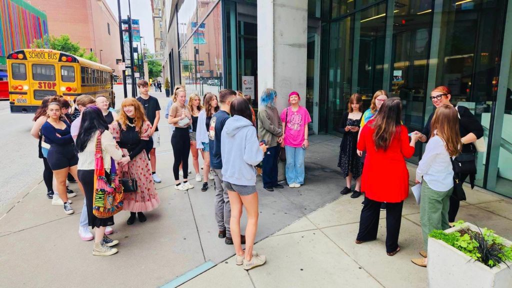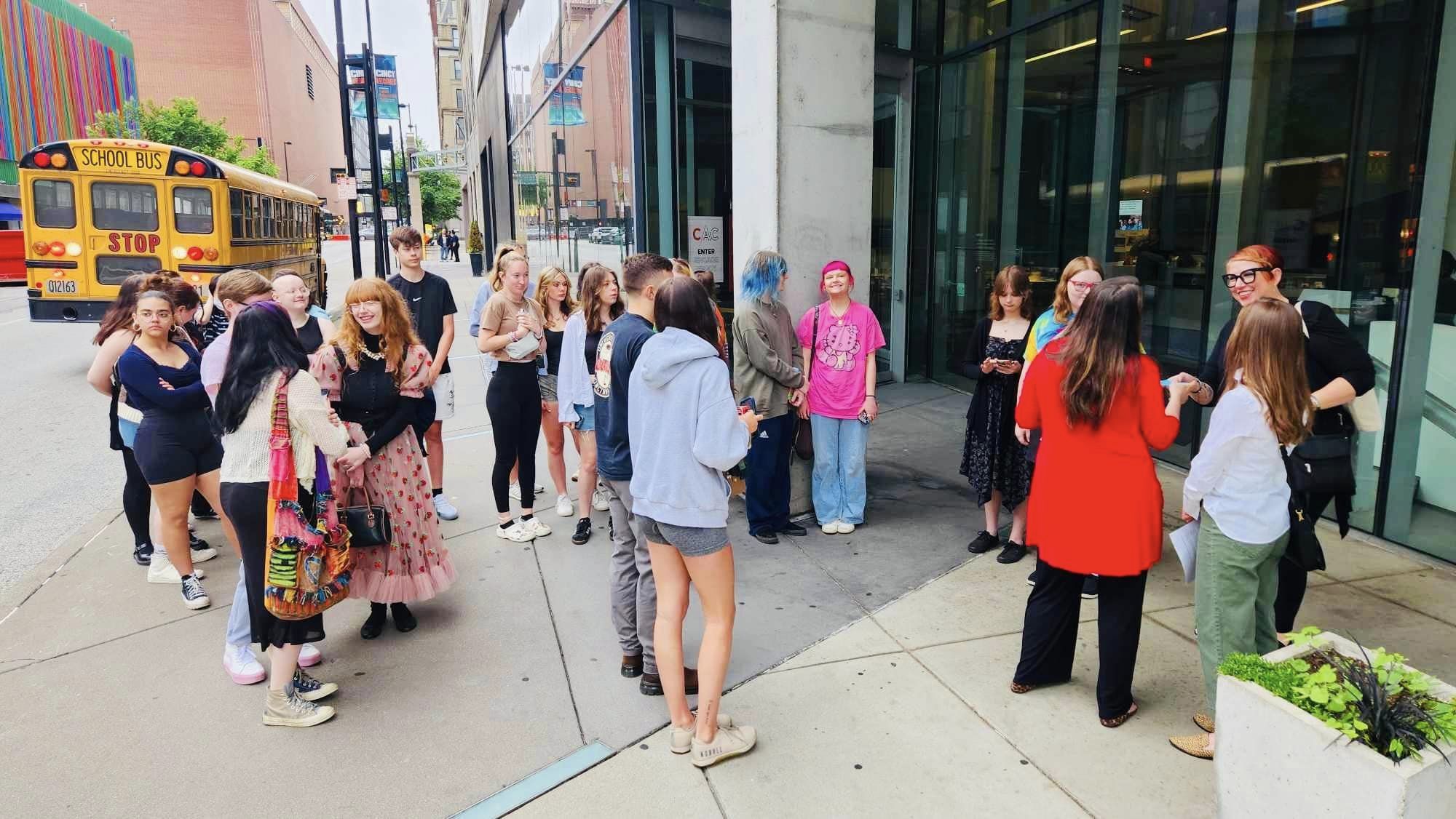 The program kicked off for the students in the fall, with their first visit to the CAC…for many, this was their first visit ever! Students were introduced to the iconic building, celebrating its 20th anniversary this year, designed by Zaha Hadid. After learning about the history of the CAC, students toured exhibitions Zaha Hadid: A Permanent Nostalgia for Departure and Tai Shani: My Bodily Remains, Your Bodily Remains, and all the Bodily Remains that Ever Were and Ever Will Be. Students were also presented with the opportunity to hear OHHS Art and Design teacher Jamie Schorsch speak about her work on display as a part of the Wounded Healers exhibition.