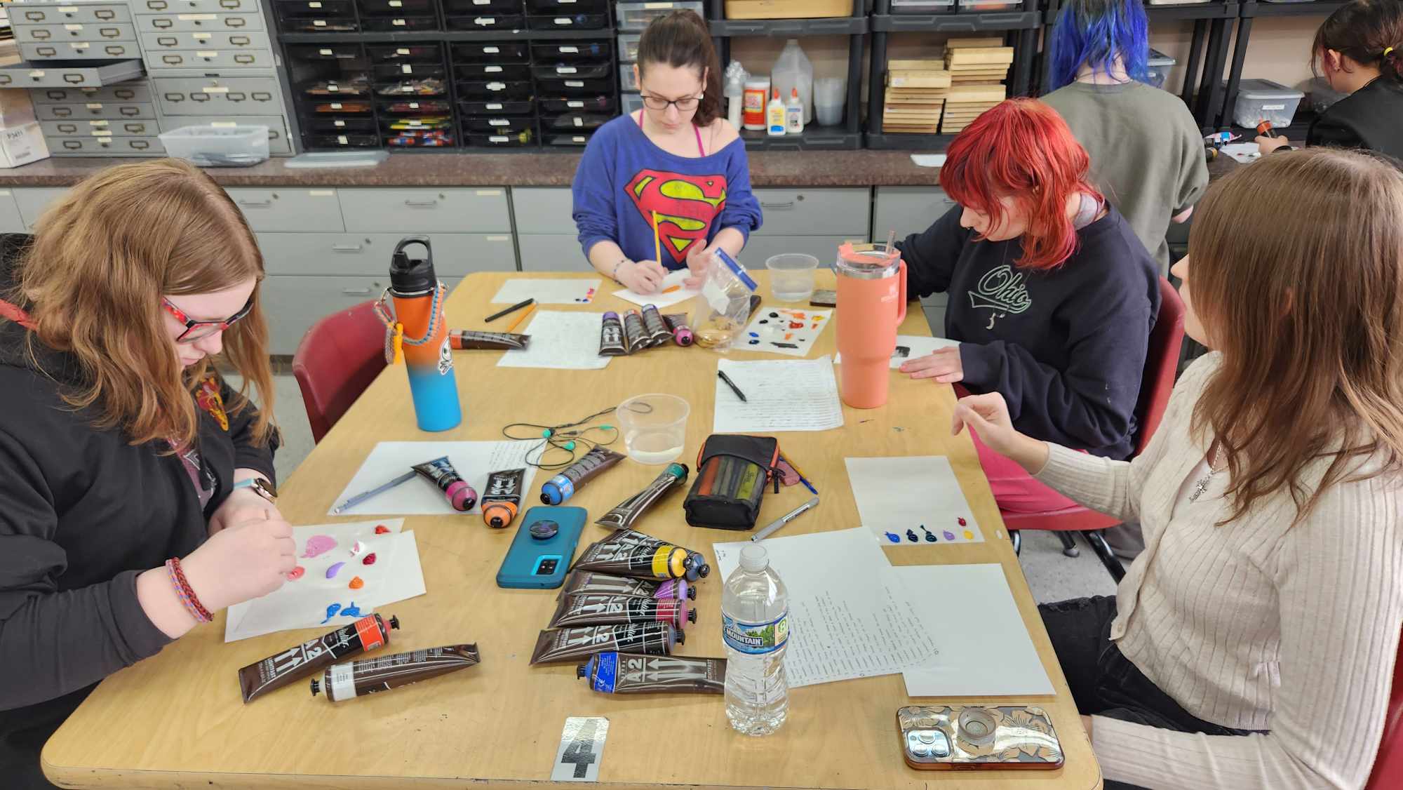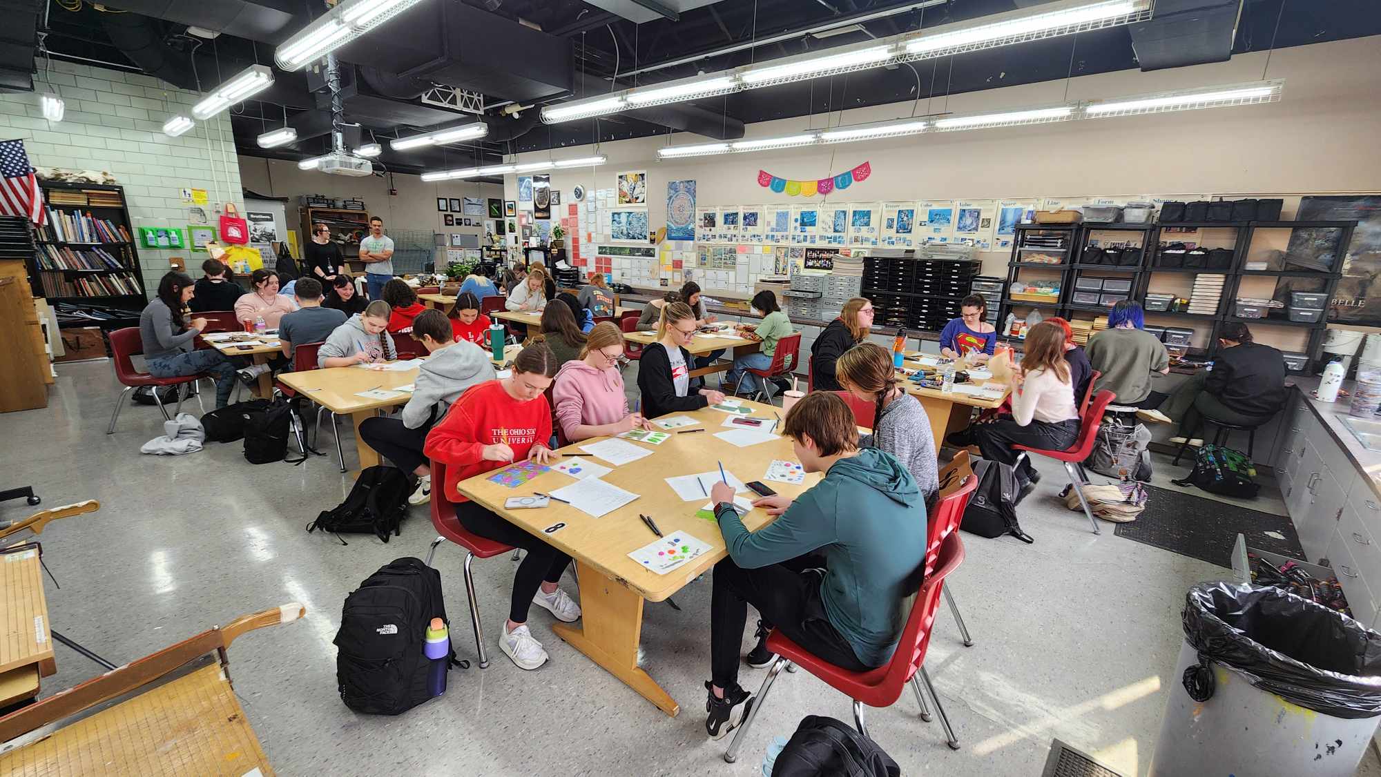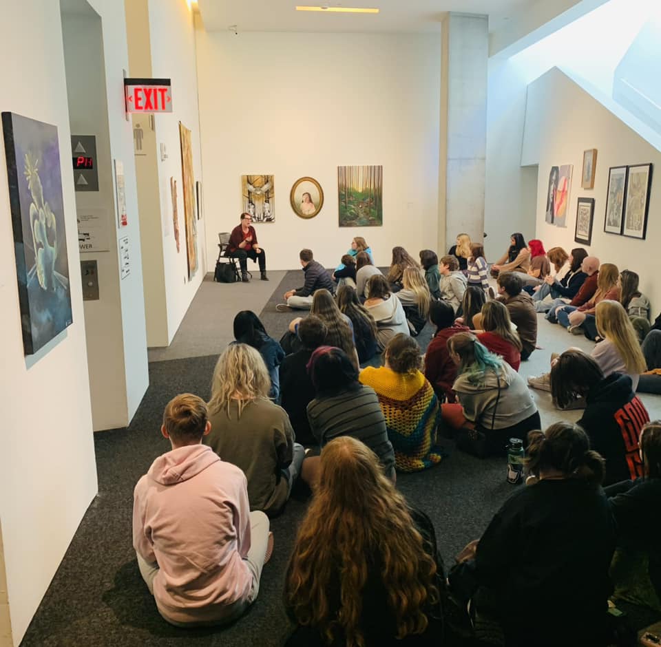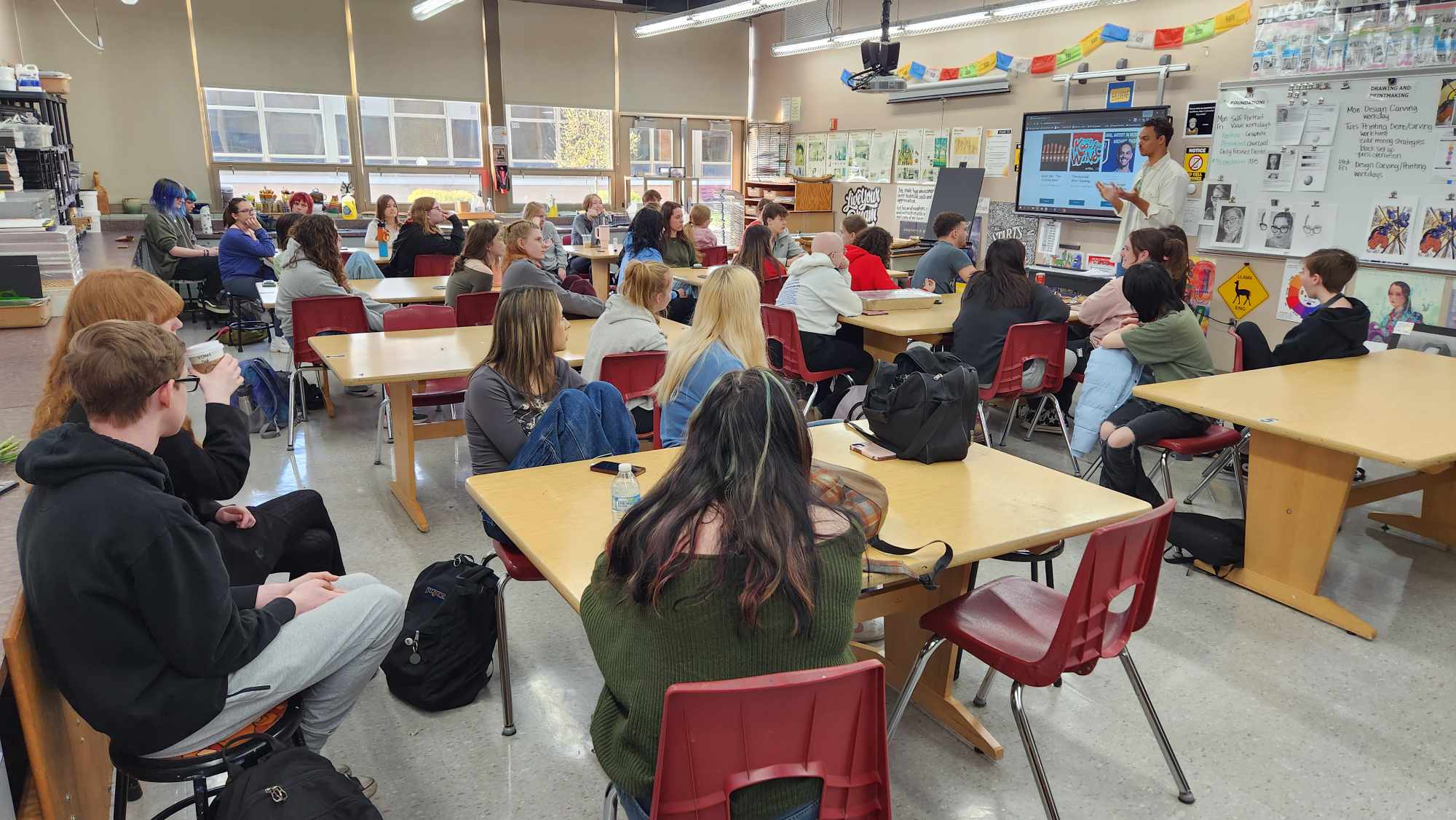 To kick off the last day of school before Spring Break, OHHS Art and Design teachers Bridget Dignan-Cummins and Jamie Schorsch organized a special experience for the Studio Art AP students. Artist Michael Thompson brought his expertise and passion for art to Oak Hills High School as part of the CAC’s School Outreach Program. Engaging with Studio Art AP students, Thompson shared invaluable insights into his creative process, inspirations, and the contemporary art scene. Through interactive discussions and demonstrations, students gained a deeper understanding of artistic expression and were inspired to explore their own creativity. Thompson’s visit not only enriched the students’ artistic knowledge but also fostered a sense of connection to the broader art community, leaving a lasting impact on their artistic journeys.