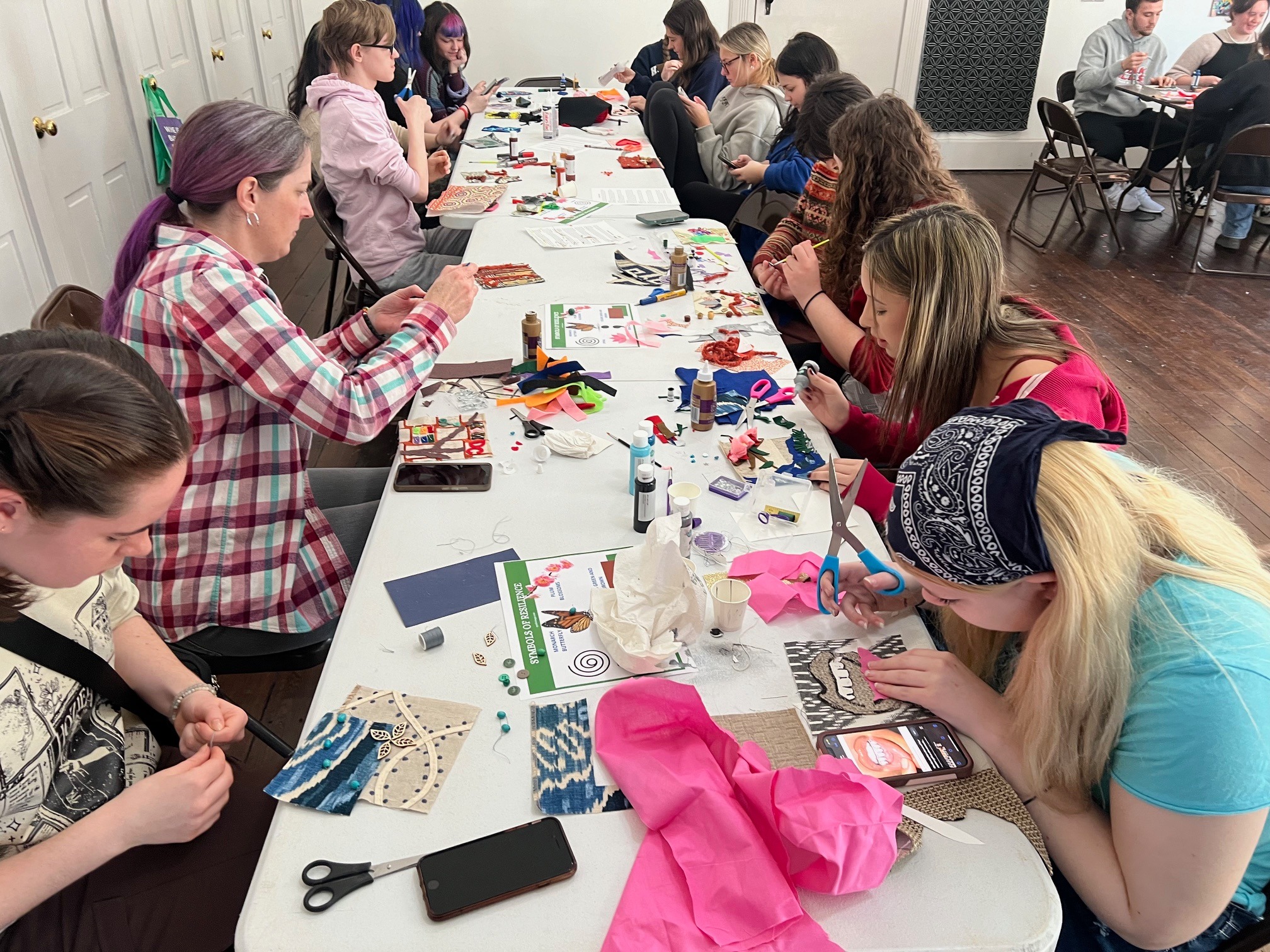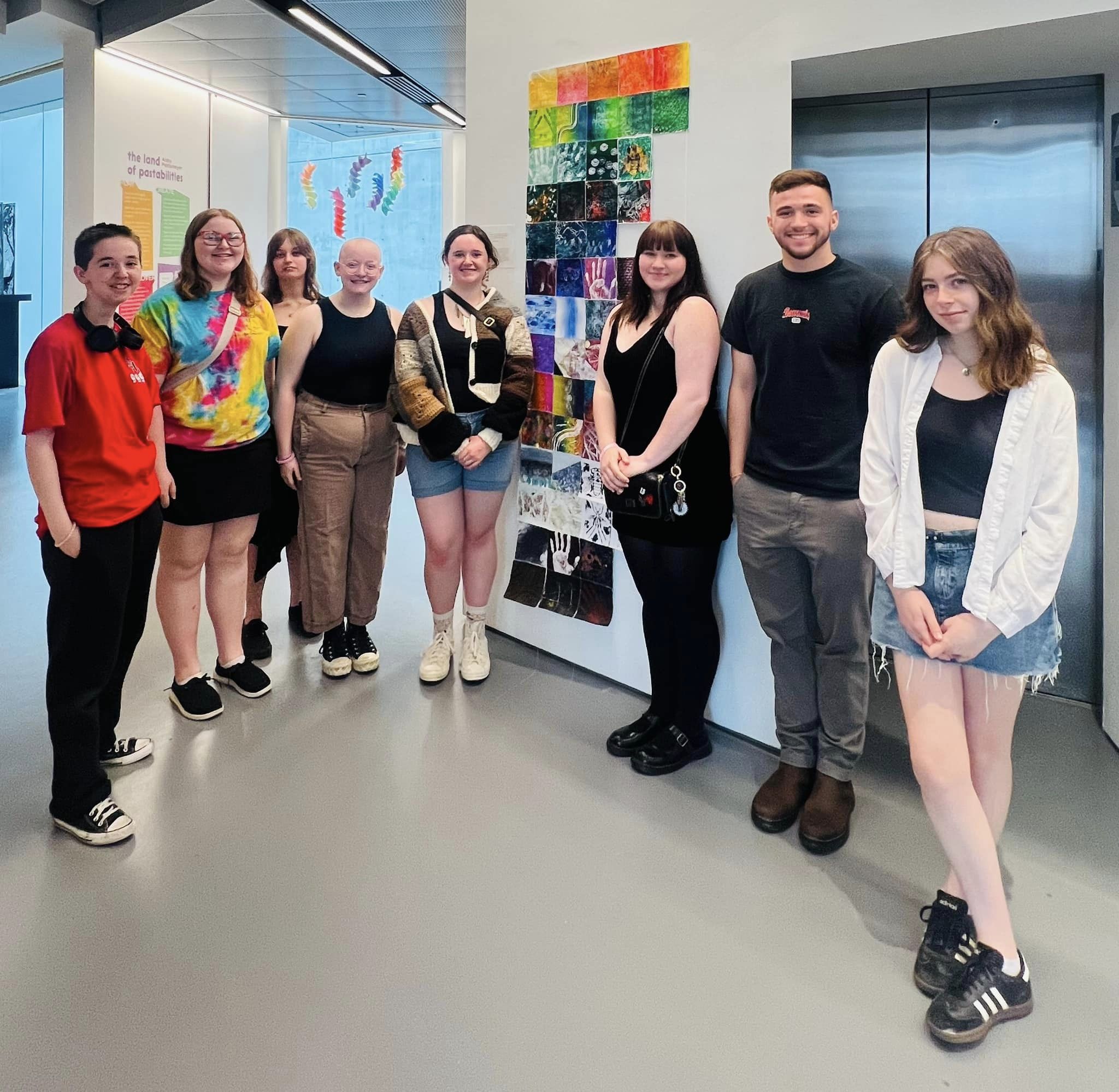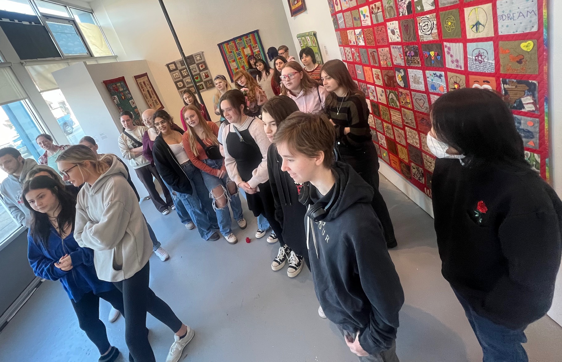 Following their experience at the CAC, students visited the Wave Pool Gallery, located in Camp Washington. While there, they learned about community engagement in creating collaborative works and communicating messages of hope and resilience. As a part of the “Story Quilts” exhibition experience, students created their own squares to be added to a community quilt and we compiled their designs into a digital version as a reminder of their experience and their OHHS art community.