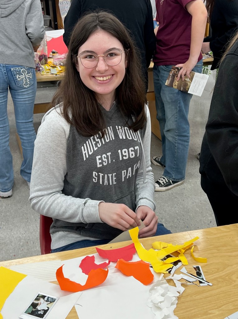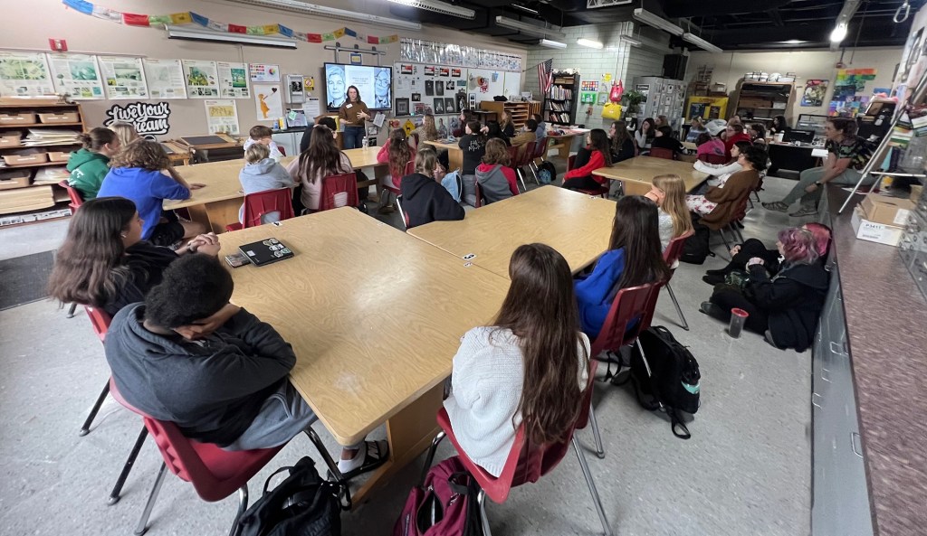 Artist Rachel Linneman recently visited the AP Art and Design students for an interactive workshop as a part of this year’s Contemporary Arts Center School Outreach Program. The CAC SOP offers students from grades 2 through 12 a comprehensive, immersive experience with contemporary art. Running from September through May, this year-long program includes an in-school orientation, two guided tours of CAC exhibitions, a classroom project tied to the exhibition led by a local artist, and a spring visit to an artist’s studio. Program docents work with the same class throughout the year, fostering continuity and rapport with the students. Many docents have developed long-standing relationships with the schools and teachers they support, providing consistent guidance and engagement year after year.
