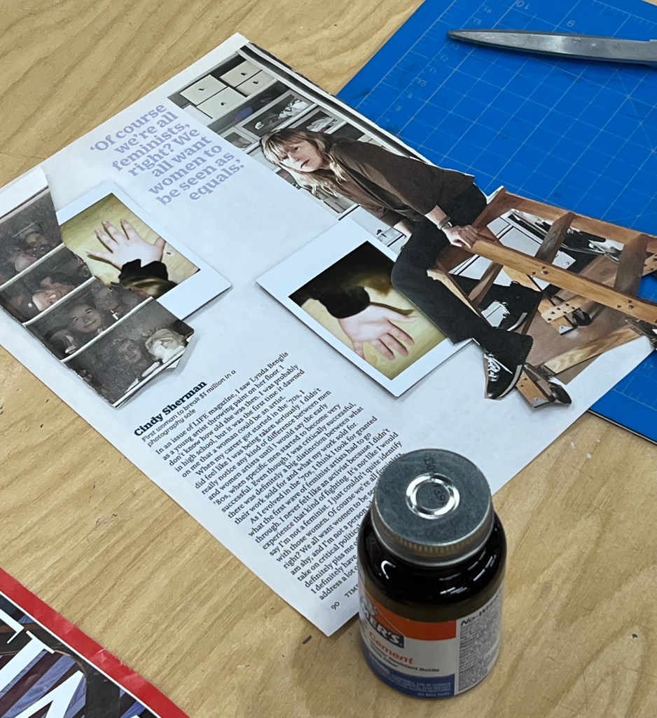 During the workshop, students explored concept of identity through individual collages and selected, and archived, found objects of personal significance in the creation of a collaborative ‘community pie’ piece. The idea of constructing multiple views of the self, and components that make up community, created connection to the Barbara Probst exhibition at the CAC, ‘Subjective Evidence’, that focused on multiple vantage points capturing a single scene and moment in time. Throughout the year, students will create artworks inspired by their experiences with the CAC SOP and will participate in an exhibition in the Spring of 2025.