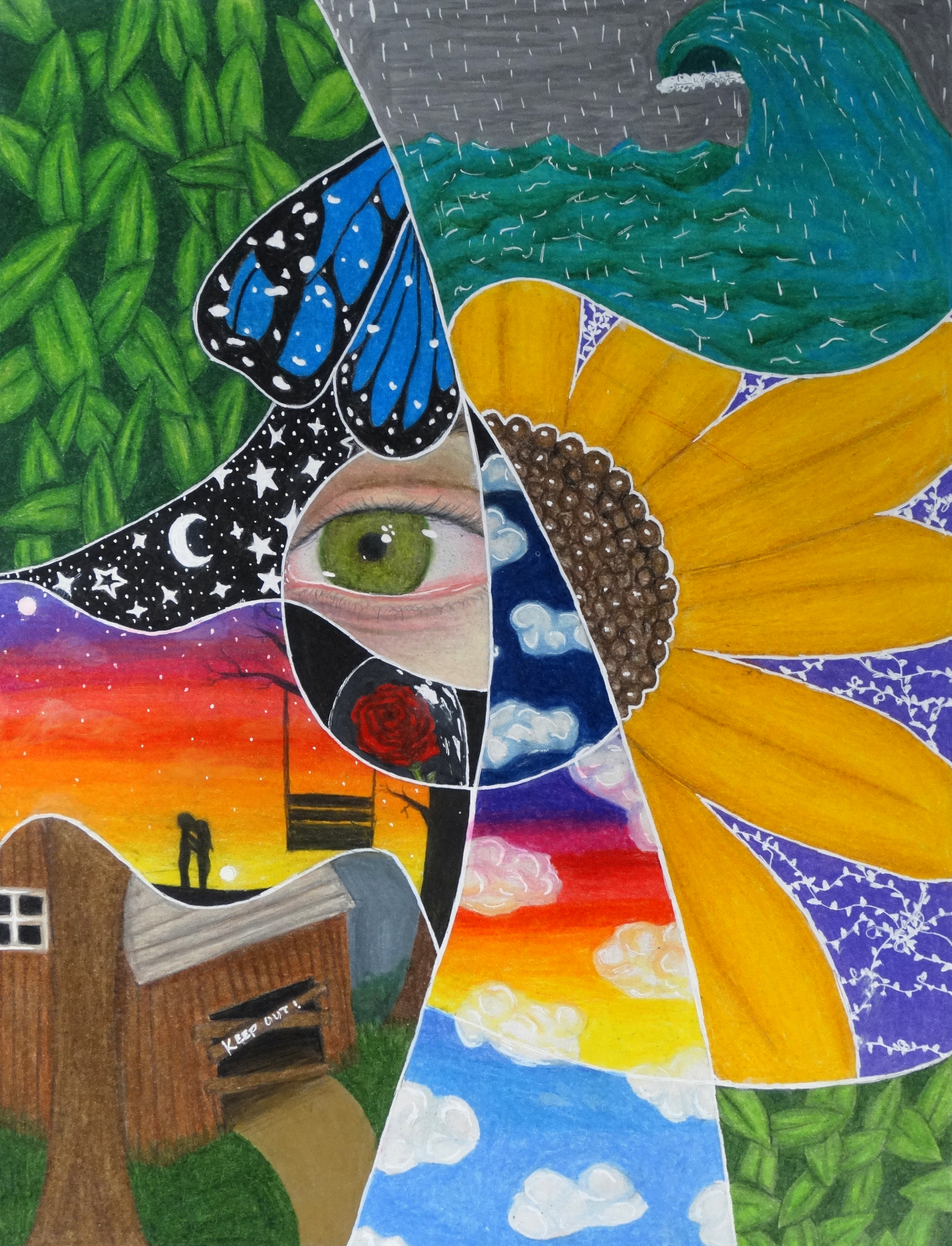 The experiences culminate in the creation of original artworks for exhibition at the Annex Gallery. Students were challenged to consider their interpretation of “The Beauty Within” or “Sacred Space” and generated works that demonstrate their approach to the term after brainstorming, project planning, and setting up their own resource images. Using a model for Juried Exhibitions, students selected 6 artworks for framing for the exhibition, 6 artworks that will be matted for the physical display in addition to sculptures, and the remaining will be displayed in a virtual exhibition in the gallery space.