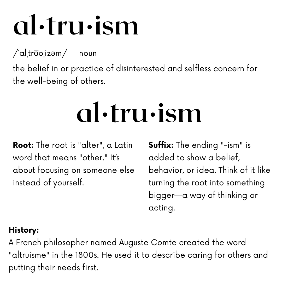 As part of their preparation, students explored the concept of altruism using vocabulary strategies rooted in the Science of Reading. They deconstructed the word into its morphological components: alter- (root meaning “other”) and -ism (suffix denoting a belief or practice). Through guided discussions, students examined how altruism reflects selflessness and empathy, connecting its meaning to both the fight against HIV/AIDS and broader themes of social justice that they explored through the UN SDGs.