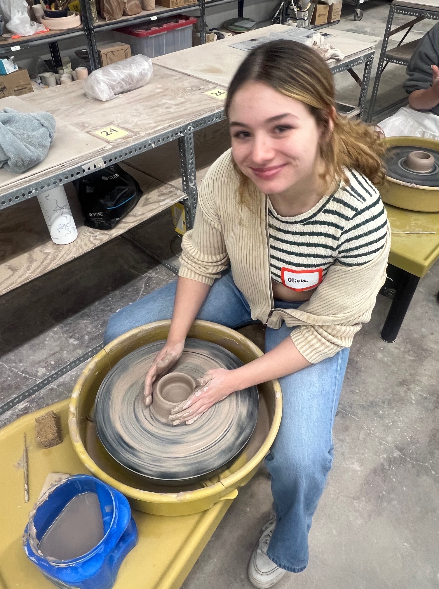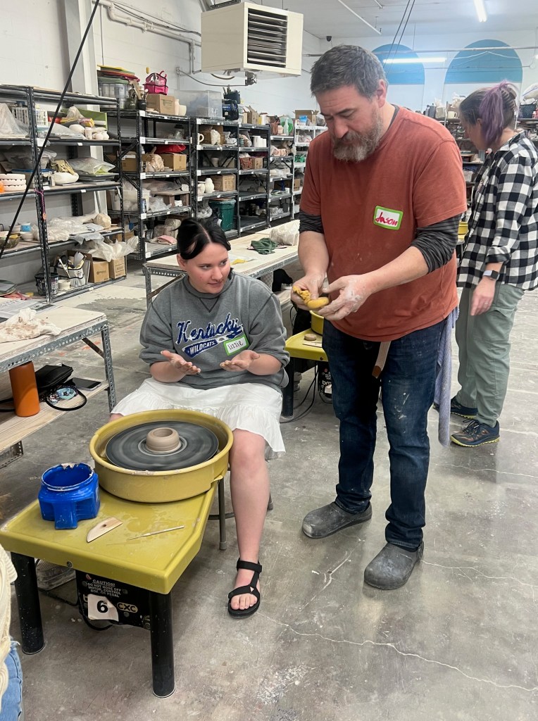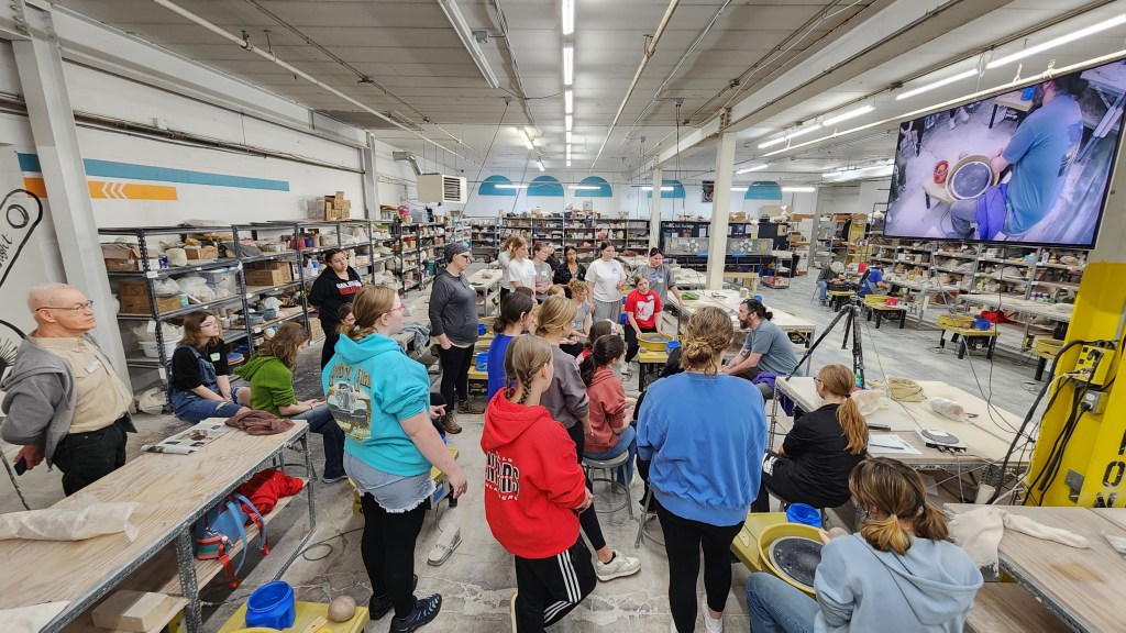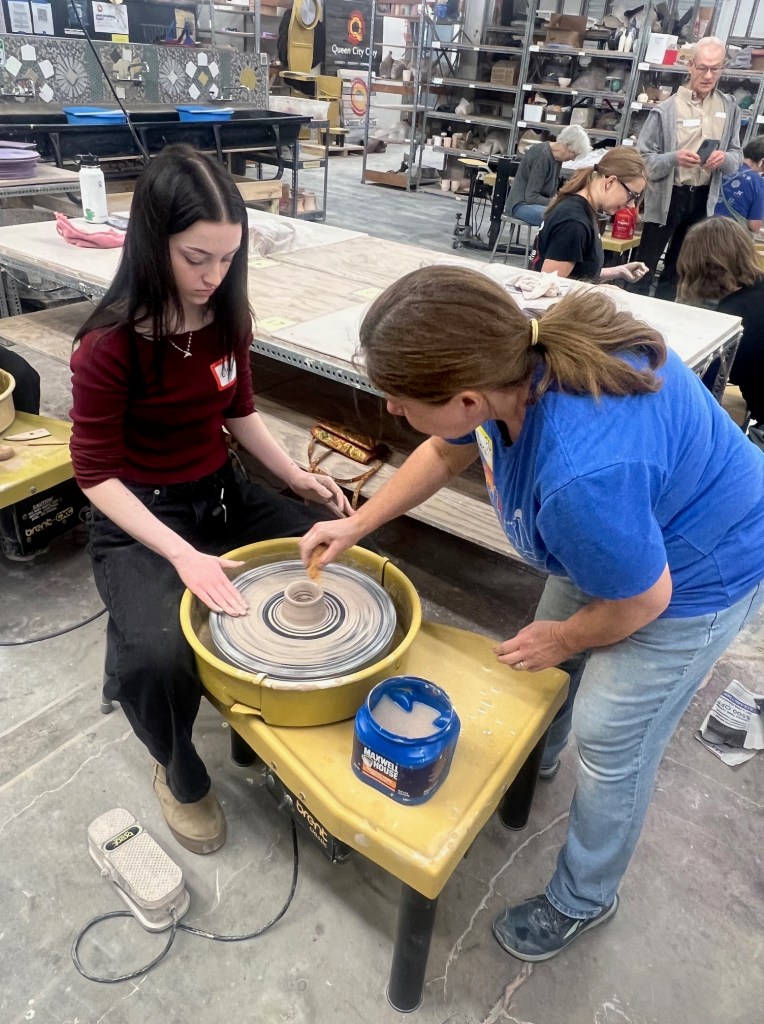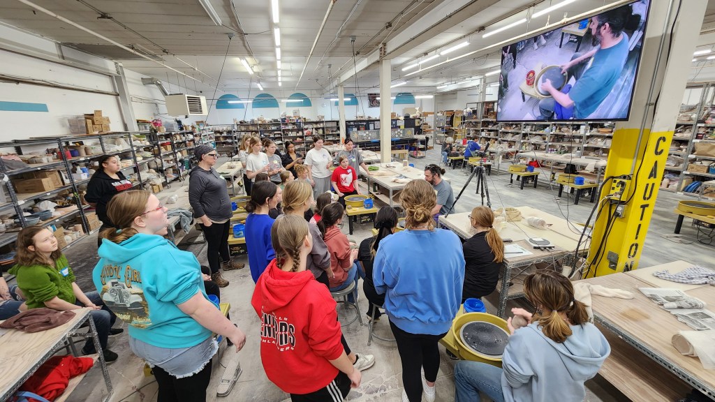 AP Art and Design students recently had the opportunity to engage in a hands-on ceramics experience at Queen City Clay as part of the Contemporary Arts Center’s School Outreach Program. This visit provided students with a deeper understanding of clay as an expressive medium, exposed them to wheel throwing techniques, and provided them with a glimpse of how the largest ceramics studio in the world operates. During the workshop, students explored wheel-throwing techniques under the guidance of professional ceramic artist, Jon Stein, and the QCC team.