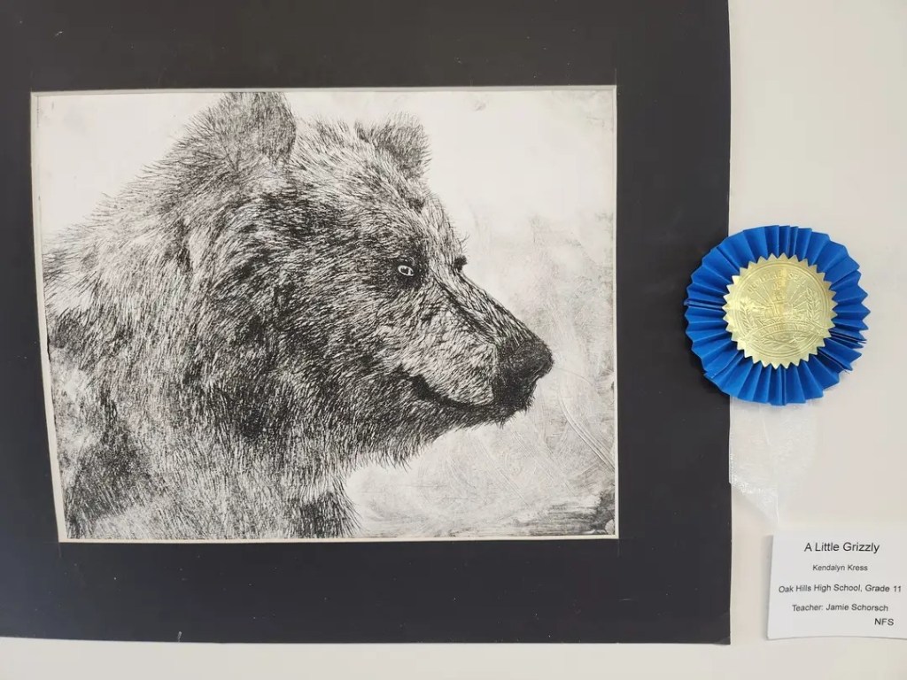 In a standout display of creativity and heart, Oak Hills High School junior Kendalyn Kress has earned the Peoples’ Choice award for her piece titled “A Little Grizzly,” featured in The HeART of the Community show at the Delhi Event Center Gallery.