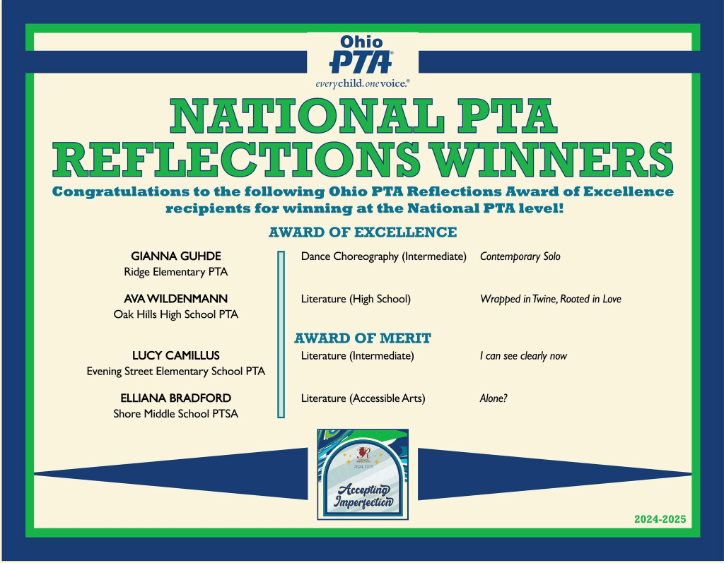 Notably, Lizzie Schreibeis was honored as a Top 25 Governor’s Award of Excellence winner for the prestigious Ohio Governor’s Youth Art Exhibition, and she exhibited alongside Molly Audretch in both the main Governor’s Exhibition and the Cameo Exhibition at the Ohio Department of Education and Workforce. Molly, Grace, Annie, and Lizzie also earned the highest possible AP score of 5 during their junior year for their AP Art and Design portfolios—an extraordinary accomplishment reflecting both vision and skill. Their dedication, leadership, and unwavering pursuit of excellence make them true standouts in the Oak Hills visual arts community.