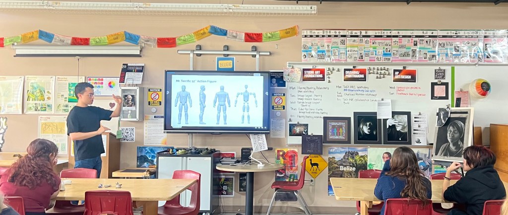 The “Creative Canvassing” series bridges our classroom work with the broader professional world. Evander’s presence as an alumnus is especially powerful: he is proof that the path from classroom to career is real and achievable. His talk reinforced some of the key messages: keep creating, keep learning, and network intentionally. The OHHS Art and Design Department would like to extend our gratitude to Evander for returning to share his journey and for our students to see someone who walked their halls now thriving in the industry. It’s an experience that adds depth to the lesson: design isn’t just about assignments…it’s about impact, career, and creative purpose.
