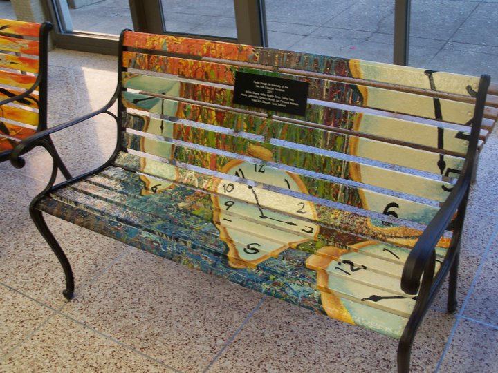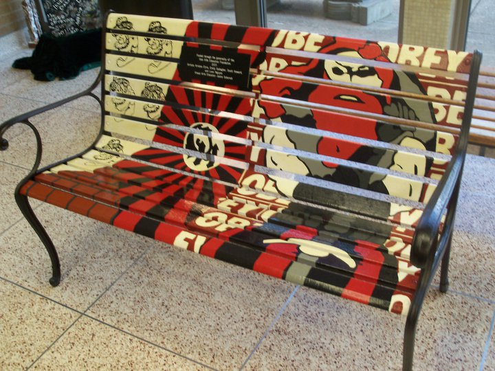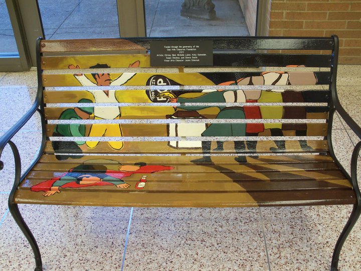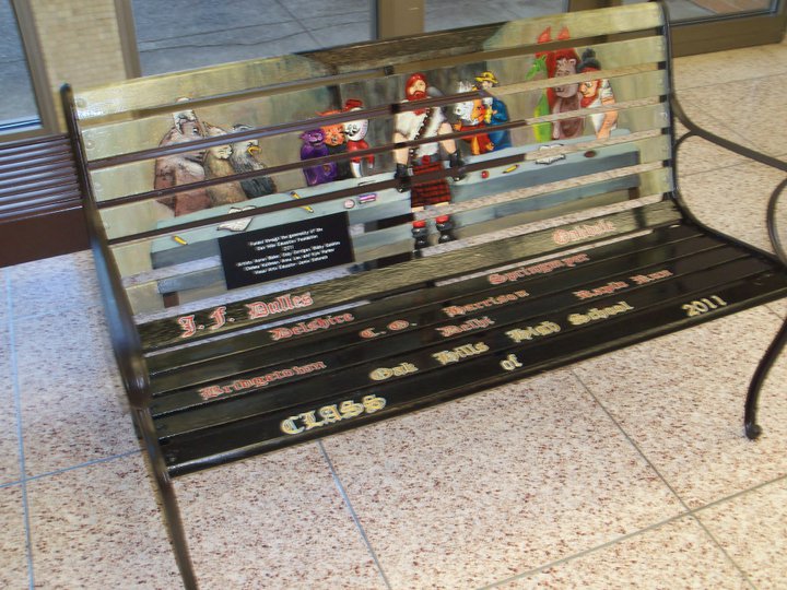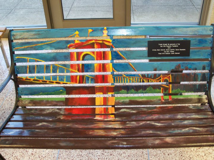 The students were given the directive to research, and chose, an image or artist from Art History to reference and adapt for their original bench design. Stylistic and technical inspirations represent a range from Renaissance to 21st Century Art- the classes studied the works of Shephard Fairey, Francisco Goya, Leonardo DaVinci, Monet, Salvador Dali, and Jackson Pollack. Styles of representation provided inspiration for the rendering of images that were intended to reflect students’ interpretations of both the Oak Hills and Greater Cincinnati community they belong to, symbolically.